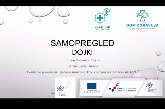 Dana 27.11.2020. održana je peta, zadnja online edukacija o samopregledu dojke. Edukaciju je održala Emina Grgurević Dujmić, dr. med., spec. radiologije, patronažnim i medicinskim sestrama zdravstvene njege u kući te radiološkim tehničarima u ispostavama DZ PGŽ Opatija i Crikvenica.