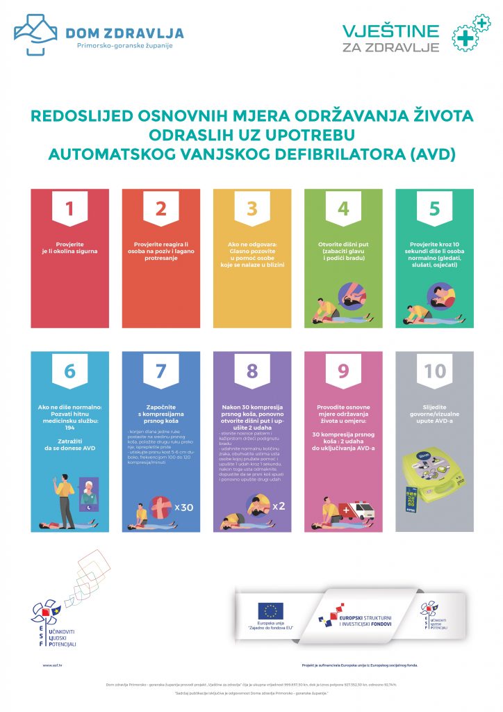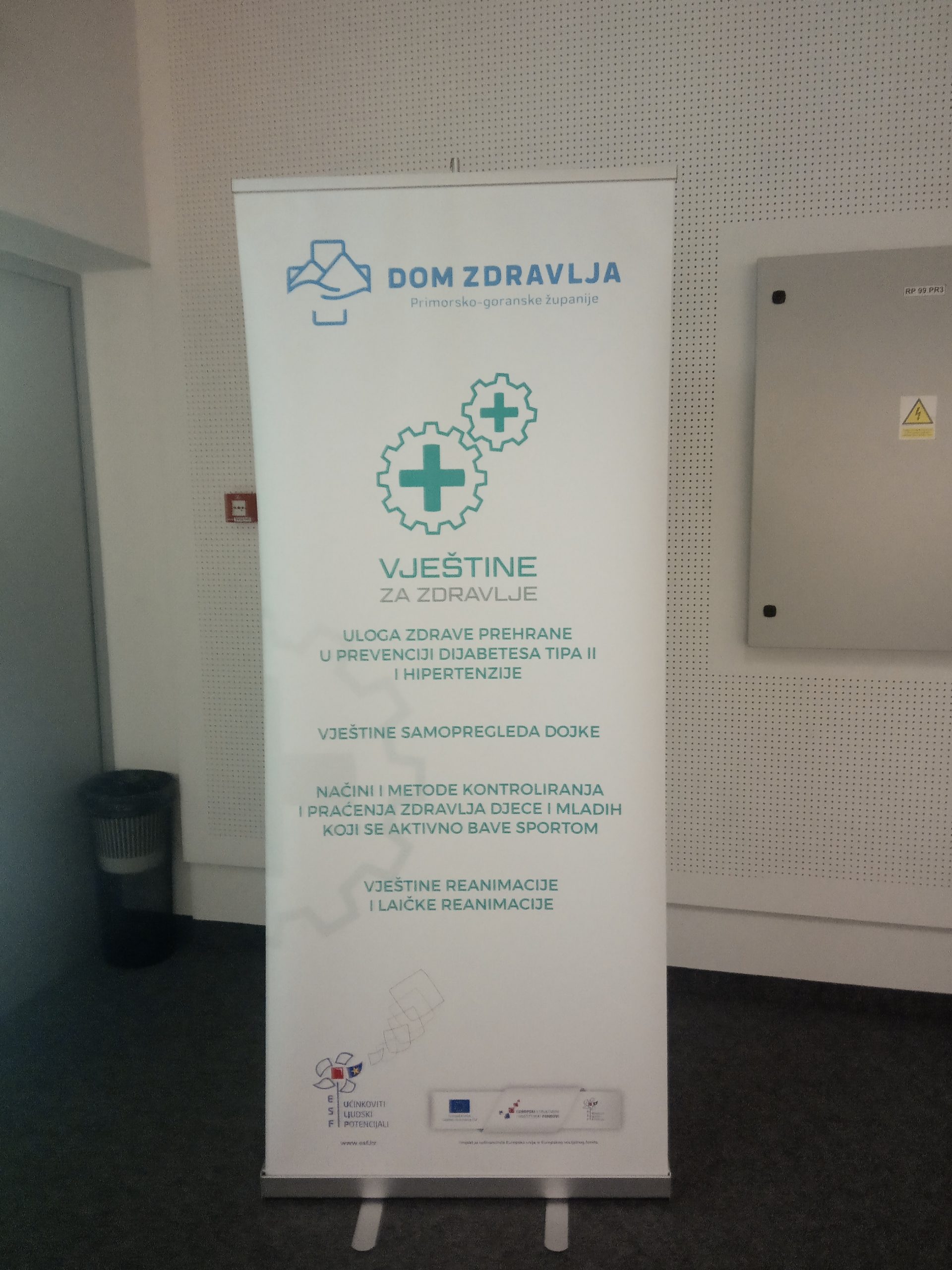 Dom zdravlja Primorsko-goranske županije provodi projekt „Vještine za zdravlje“ čiji je cilj obrazovati zdravstvene djelatnike o važnosti prehrane za prevenciju dijabetesa tipa II i hipertenzije, vještini samopregleda dojke u svrhu ranog otkrivanja karcinoma i prevencije prerane smrti, pravilnoj (laičkoj) reanimaciji u svrhu smanjenja smrtnosti i prevenciju teških oštećenja te načinima i metodama praćenja i kontrole zdravlja u djece i mladih sportaša. Time će se razviti vještine zdravstvenih djelatnika kao i svijest o važnosti prevencije i ranog otkrivanje najtežih stanja i bolesti.